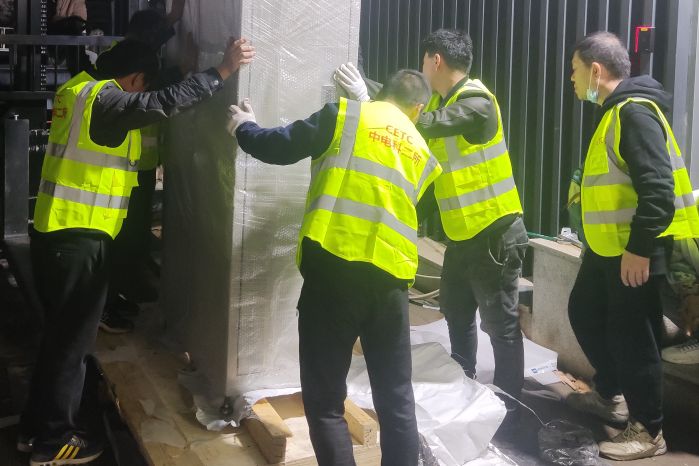 在設(shè)備進(jìn)場時,正趕上太原市連日降雨、氣溫驟降,為了不耽誤項目進(jìn)度,項目組決定在保證安全的前提下連夜冒雨作業(yè)。微信群內(nèi)的消息剛一發(fā)出,“收到”“明白”“馬上到”,一條條簡短的回復(fù)從手機(jī)上彈出,大家無一例外的準(zhǔn)時出現(xiàn)在項目現(xiàn)場,卸貨、搬運(yùn)、拆包,期間馬不停蹄地投入工作。團(tuán)隊齊心協(xié)力,奮力拼搏,確保了設(shè)備按時進(jìn)場。初冬的寒風(fēng)陣陣襲來,冰冷的雨水和汗水交織在一起,描繪出團(tuán)隊奮戰(zhàn)四季度的最美畫卷。